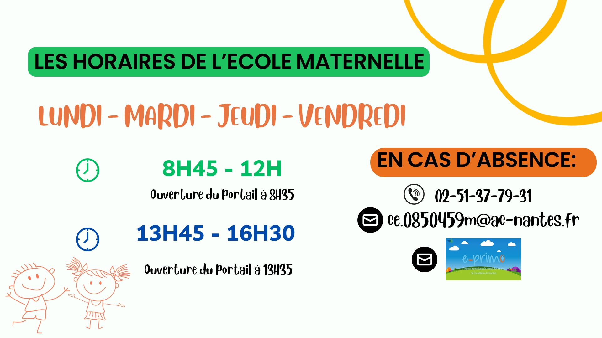 Les horaires de l’école